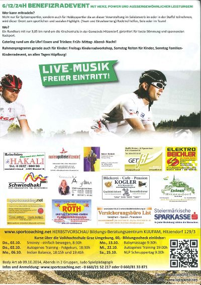250 Radbegeisterte werden sich also am ersten September-Wochenende auf den Weg rund um die Kirschenhalle machen. Eine Runde ist 3,85 km kurz und mit nur 30 Höhenmetern leicht schaffbar. Neben vielen begeisterten Hobby-Fahrern erwartet Veranstalter Thomas Jaklitsch auch Stars des Ultra-Radsports in Hitzendorf, etwa Joachim Ladler, den Gewinner des "Race around Austria" oder Bernd Paul, Gewinner beim "Race around Ireland".