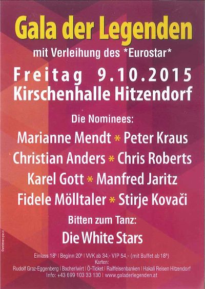 Karten erhältlich bei: Rudolf Graz-Eggenberg, Bacherlwirt, oeticket, Hakali Reisen Hitzendorf und allen Raiffeisenbanken
