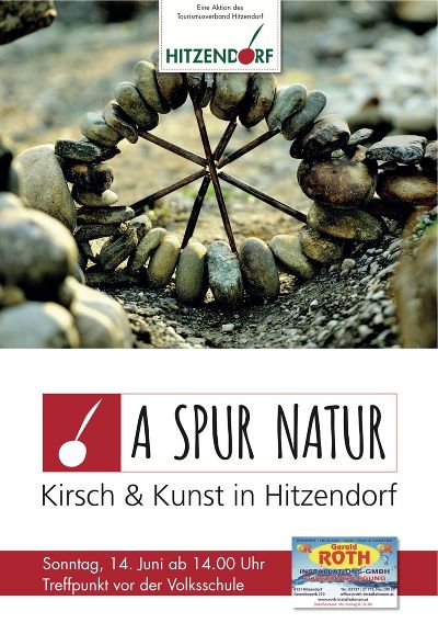 Am Sonntag, den 14. Juni 2015 um 14.00 Uhr steigt die Veranstaltung „A Spur Natur“, die als Eröffnung der Ausstellung dient. Nach einer kurzen Begrüßung geht es für die Gäste entlang eines geführten Parcours von der Volksschule durch den Heugabel-Wald über Niederberg zurück zum Schulzentrum. An der Strecke errichten drei (inter)nationale Künstler bis zu sechs Installationen, ausschließlich mit Naturmaterialien. Am 14. Juni wird jeder Künstler seine Werke persönlich vorstellen. Zum Abschluss gibt es auf der Spath-Wiese noch einen kleinen Umtrunk und ein Gewinnspiel. Die Installationen bleiben bestehen - so lange, bis sie sich die Natur wieder nimmt.